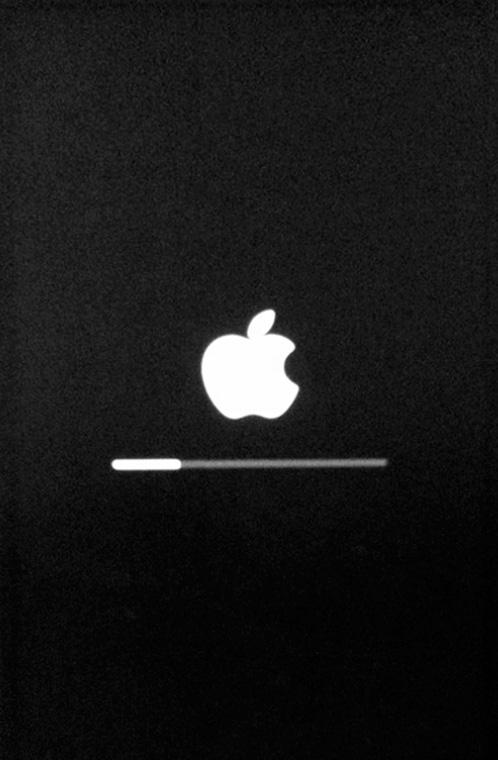 - アップデート中に表示されるプログレスバーがすでにフラットデザインです。ここらへんの画面はスナップショットが撮れないので、iPhone4で撮影しました。