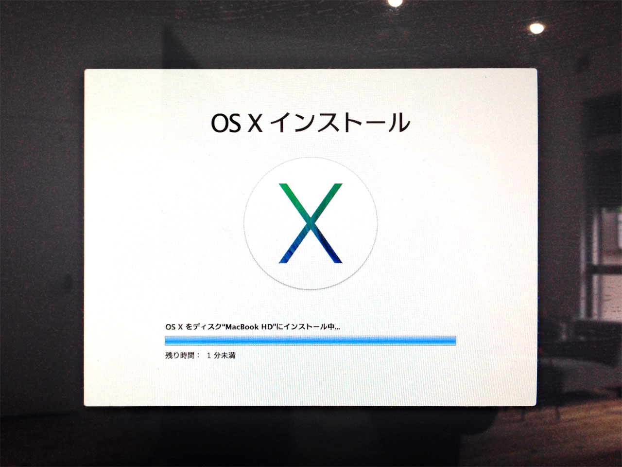 インストールには約40分近くかかりました。ダウンロードからアップグレード完了まで1時間以上を要するので、ゆっくりと時間がとれるタイミングで行う必要があります。 - 再起動〜アップグレード完了