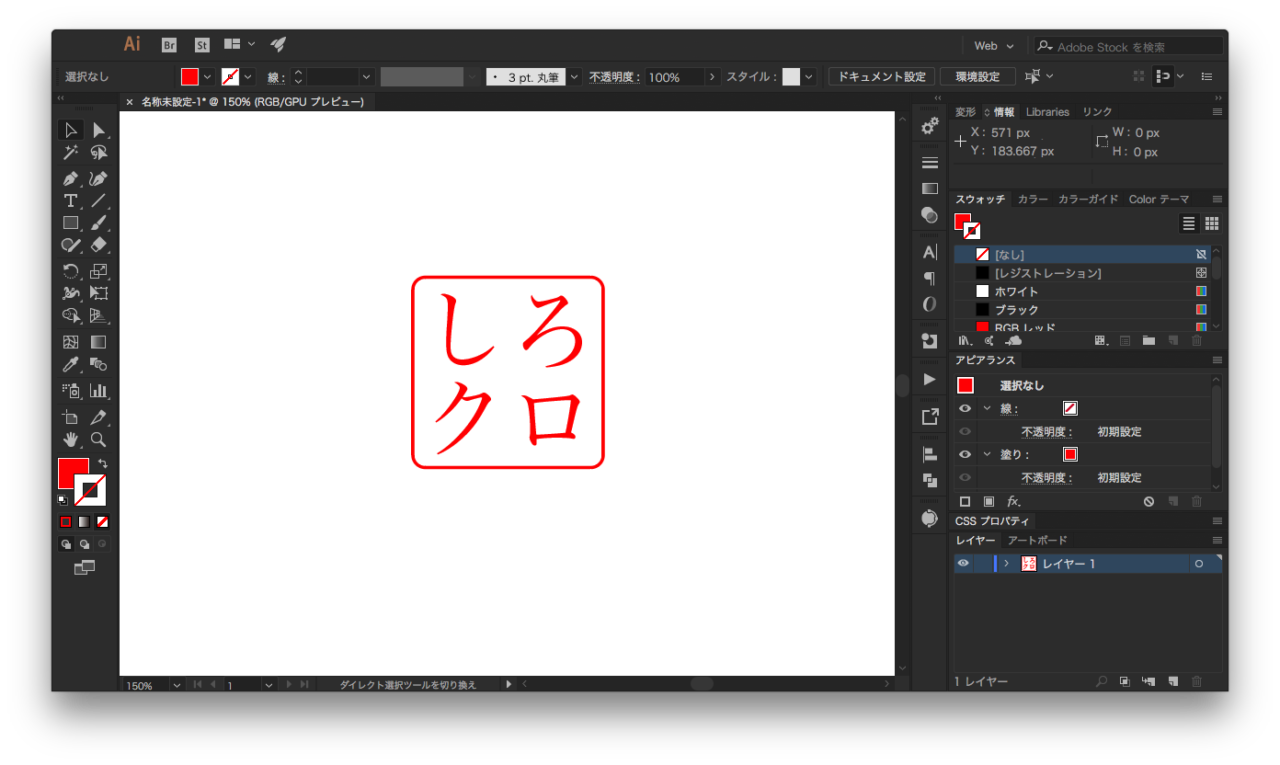 Adobe Illustrator で 印鑑のデザインを作成します。今回はサンプルで以下のような角印を作成し、PDF で保存しました。