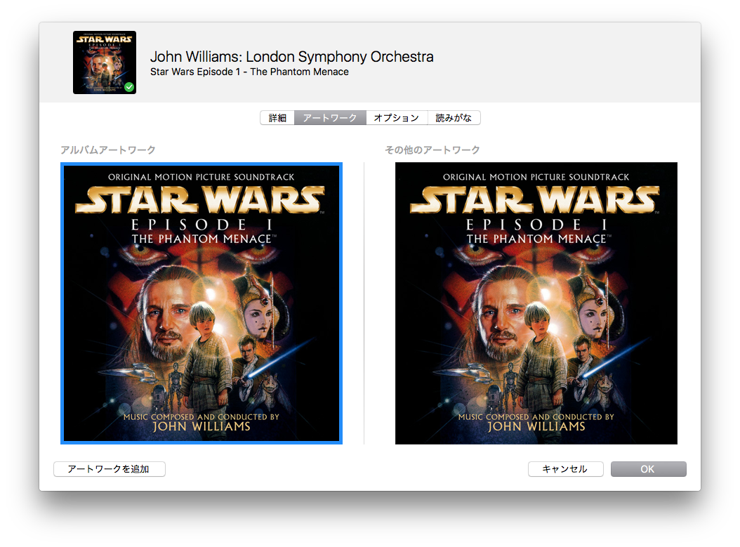 既存のアートワークは削除せず、アルバムアートワークを追加し、OK します。